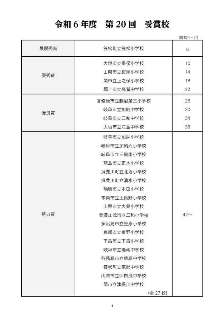 学校の道徳教育全体計画を踏まえ、「心の通う子を育てる道徳教育の実践」に努力された岐阜県内の小・中学校及び義務教育学校の応募校に対し、厳正な審査により表彰します。